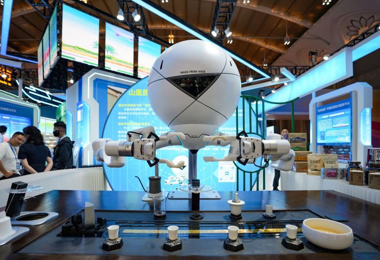 这是6月19日拍摄的第9届中国—南亚博览会上展出的泡茶机器人。(新华社)