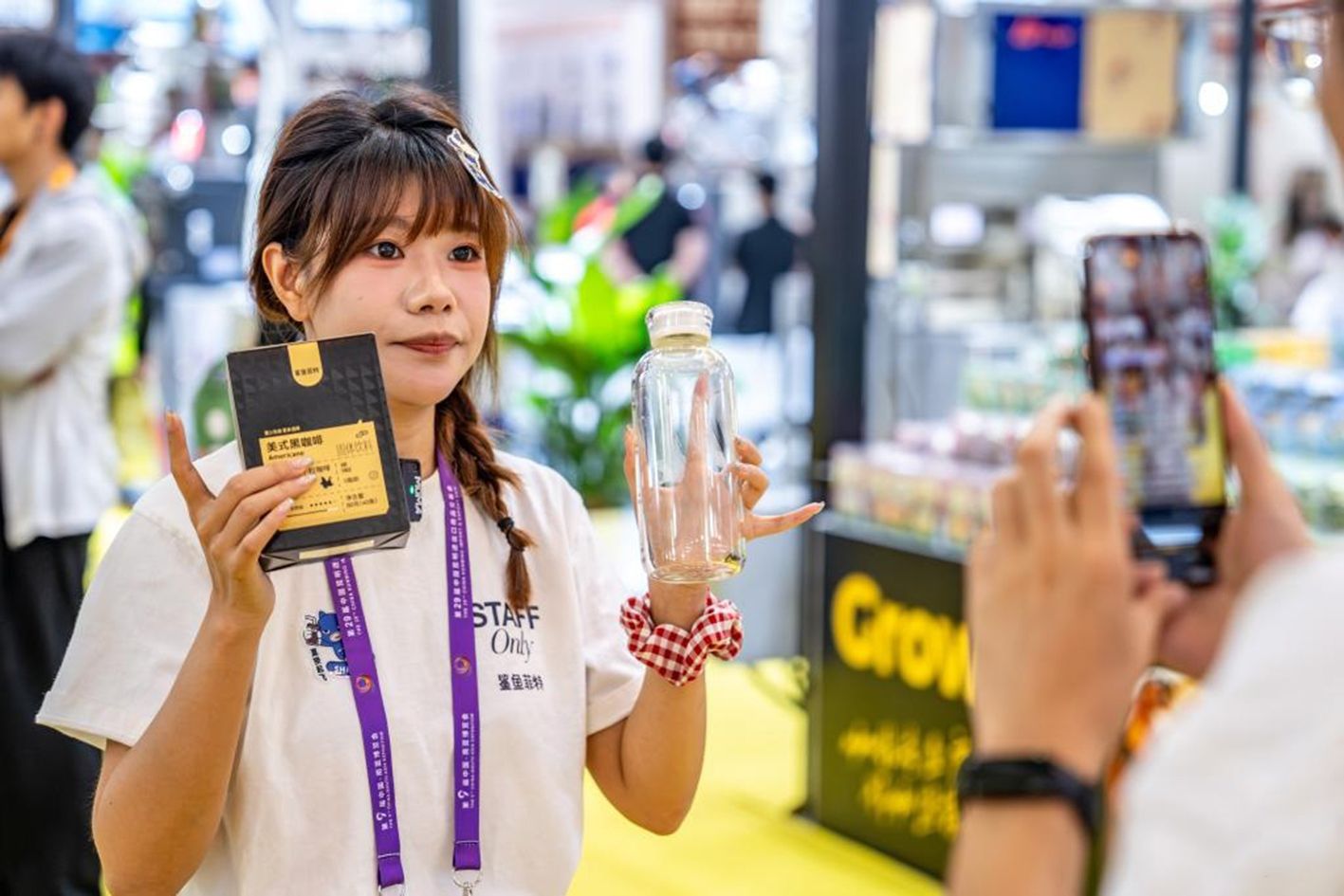 6月19日,一名参展商在第9届中国—南亚博览会咖啡产业馆直播推介云南小粒咖啡。(新华社)