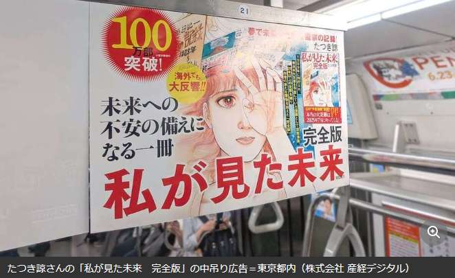 图为东京都一电车内《我所看见的未来 完全版》的广告牌。(图/《产经新闻》报道截图)