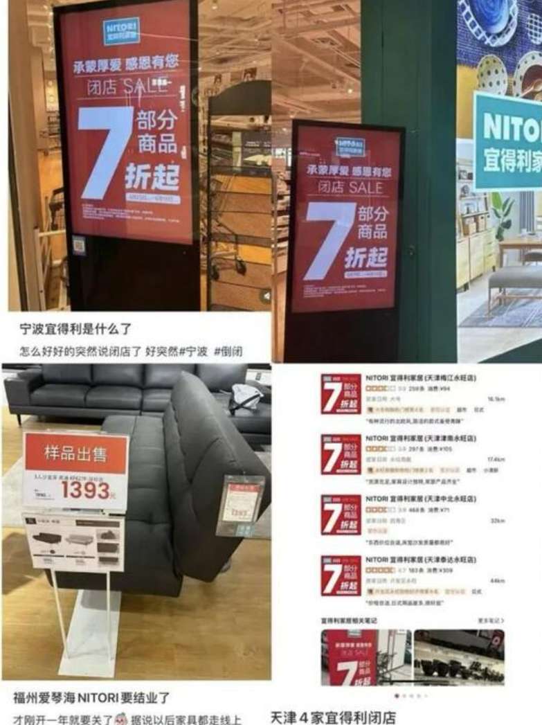 (亚太快讯消息)据36Kr Japan报道,日本家居零售巨头宜得利(NITORI)正在逐步收缩中国业务规模。6月15日,其位于浙江宁波的门店已正式关闭,北京永旺购物中心门店也计划于8月底撤出,目前正在进行清仓促销活动。