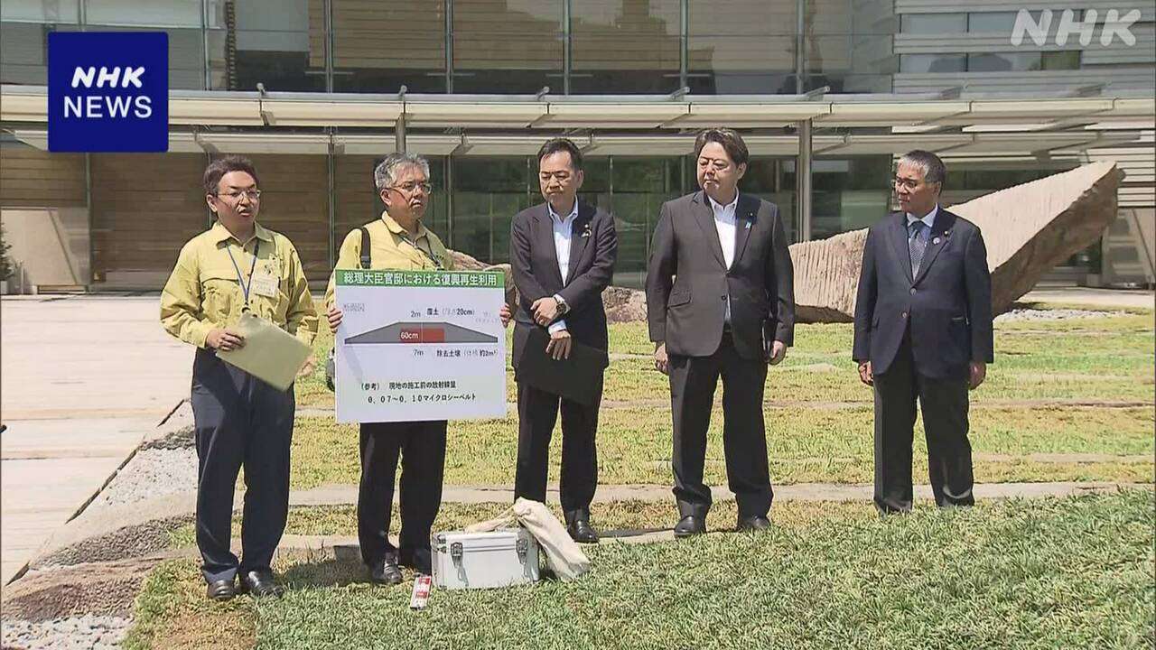 (亚太快讯消息)据NHK报道,日本东京电力福岛第一核电站事故发生后,通过除染作业所清除的土壤被运入首相官邸,并首次开始再生利用。对此,官房长官林芳正、环境大臣浅尾庆一郎等人于7月22日视察了首相官邸的庭院。