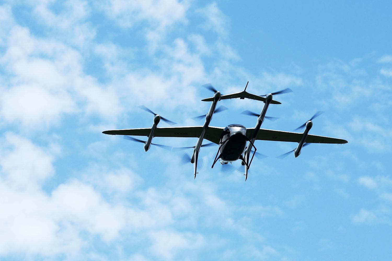这是在飞行测试基地进行飞行演示的V2000CG凯瑞鸥电动垂直起降航空器。(新华社)