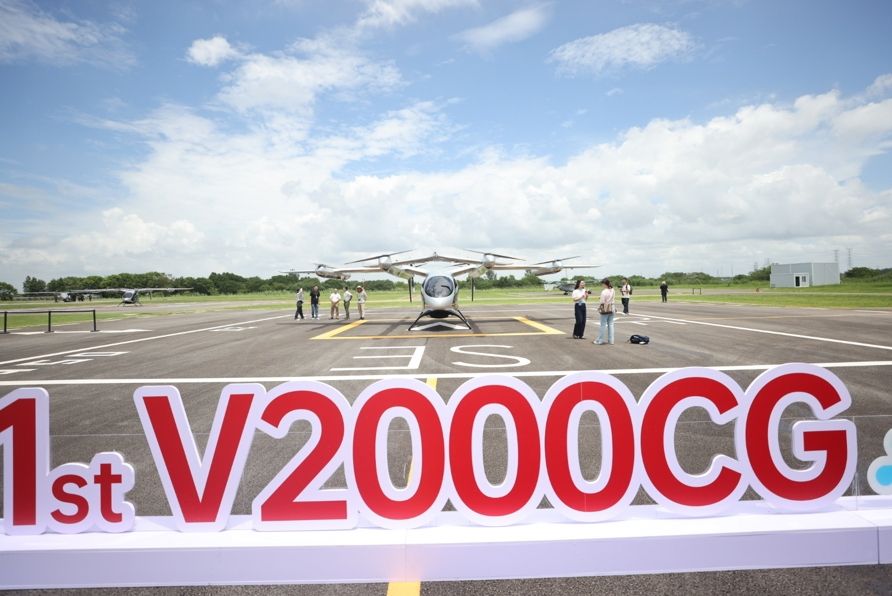 这是在交付仪式现场展示的V2000CG凯瑞鸥电动垂直起降航空器。(新华社)