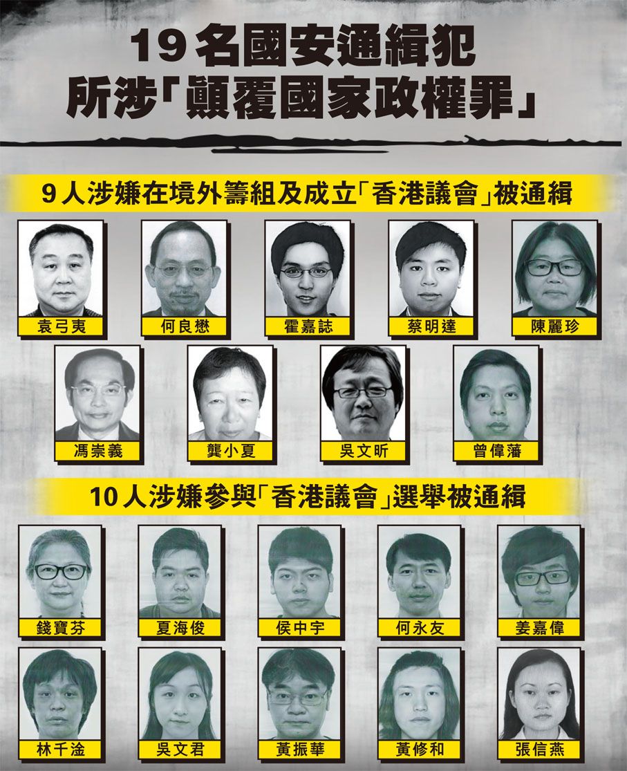 涉筹组参与颠覆组织 港警悬红通缉19人