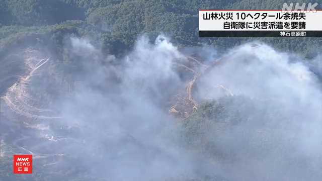 1日晚上8点半左右,当地消防接到报警称:“山腰处大范围变红”,疑似发生火灾。火灾发生地点为神石高原町小畠地区。据该町介绍,目前正在通过防灾直升机从空中持续进行灭火作业,但火势仍未得到控制。截至2日中午,已有10公顷以上的山林被烧毁。广岛县方面表示,目前尚未看到扑灭火势的希望,因此决定请求自卫队进行灾害派遣支援。