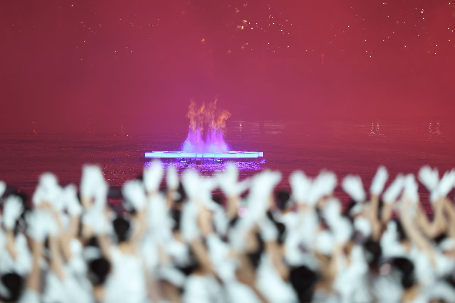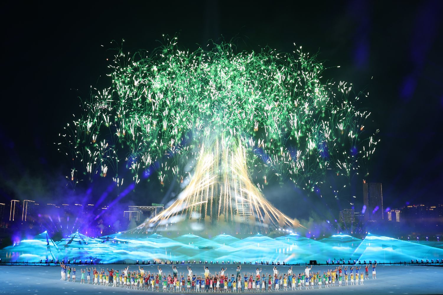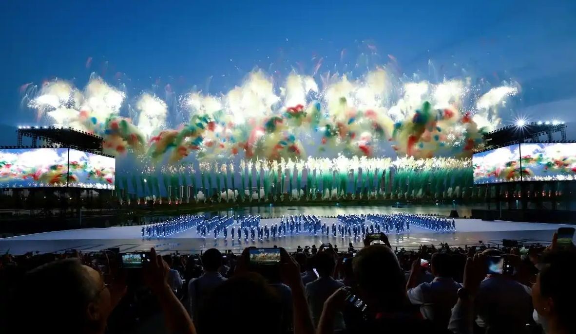 8月7日拍摄的开幕式上的焰火表演。(中国日报网)