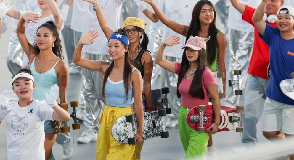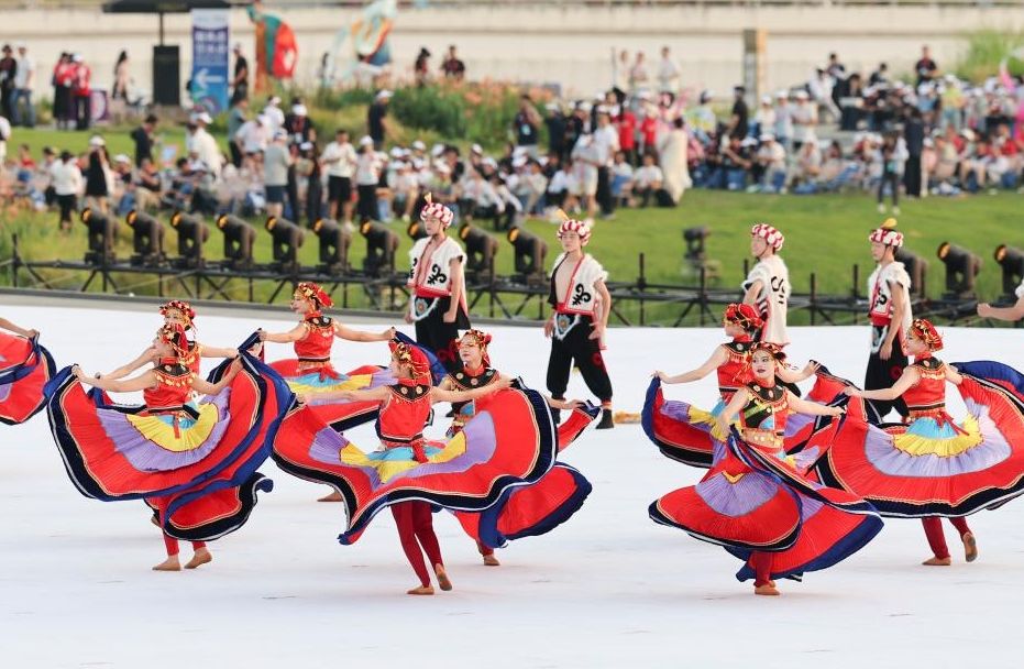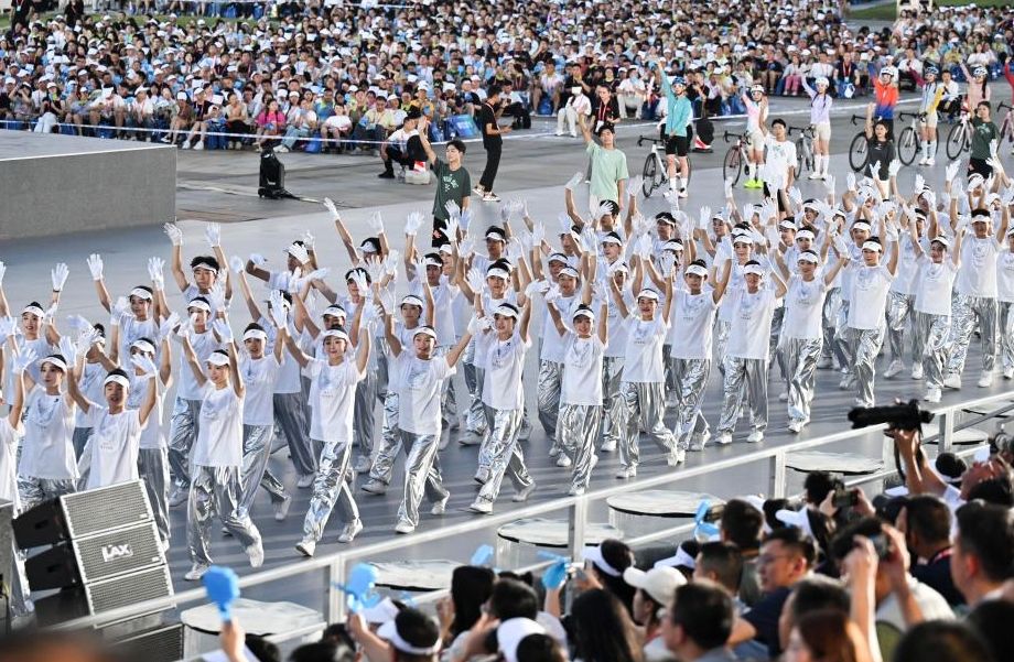 这是8月7日拍摄的开幕式前的暖场表演。(新华社)