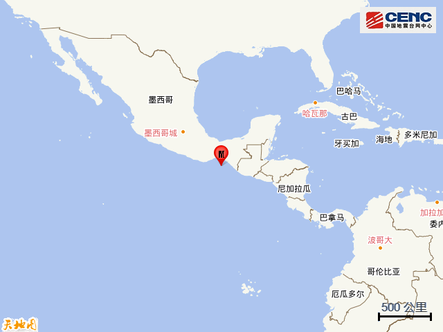 据中国地震台网正式测定,8月11日10时21分在墨西哥沿岸近海发生5.8级地震,震源深度10公里,震中位于北纬15.10度,西经94.20度。