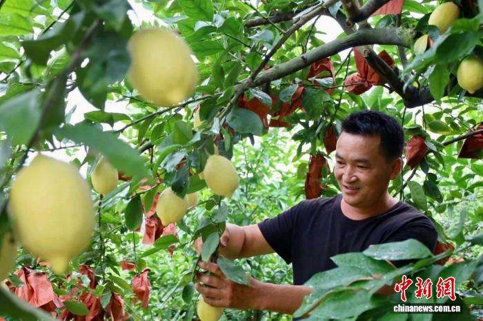 勐典村塔育村民小组种植基地中,“80后”种植户鲁浩华正在果园里检查果子质量。“2010年开始,我家种了28亩柠檬,种植技术完全依靠市农业专家指导。这些年,我逐步摸索改进种植技术。今年用上了无人机喷洒农药,柠檬树长势、果子质量和产量都越来越好。”