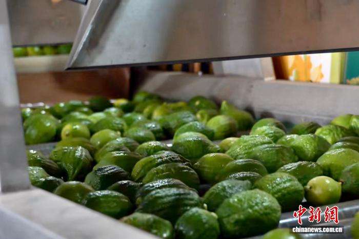 新鲜采摘的柠檬通过分选线上的自动化设备清洗、分拣。瑞丽市融媒体中心供图