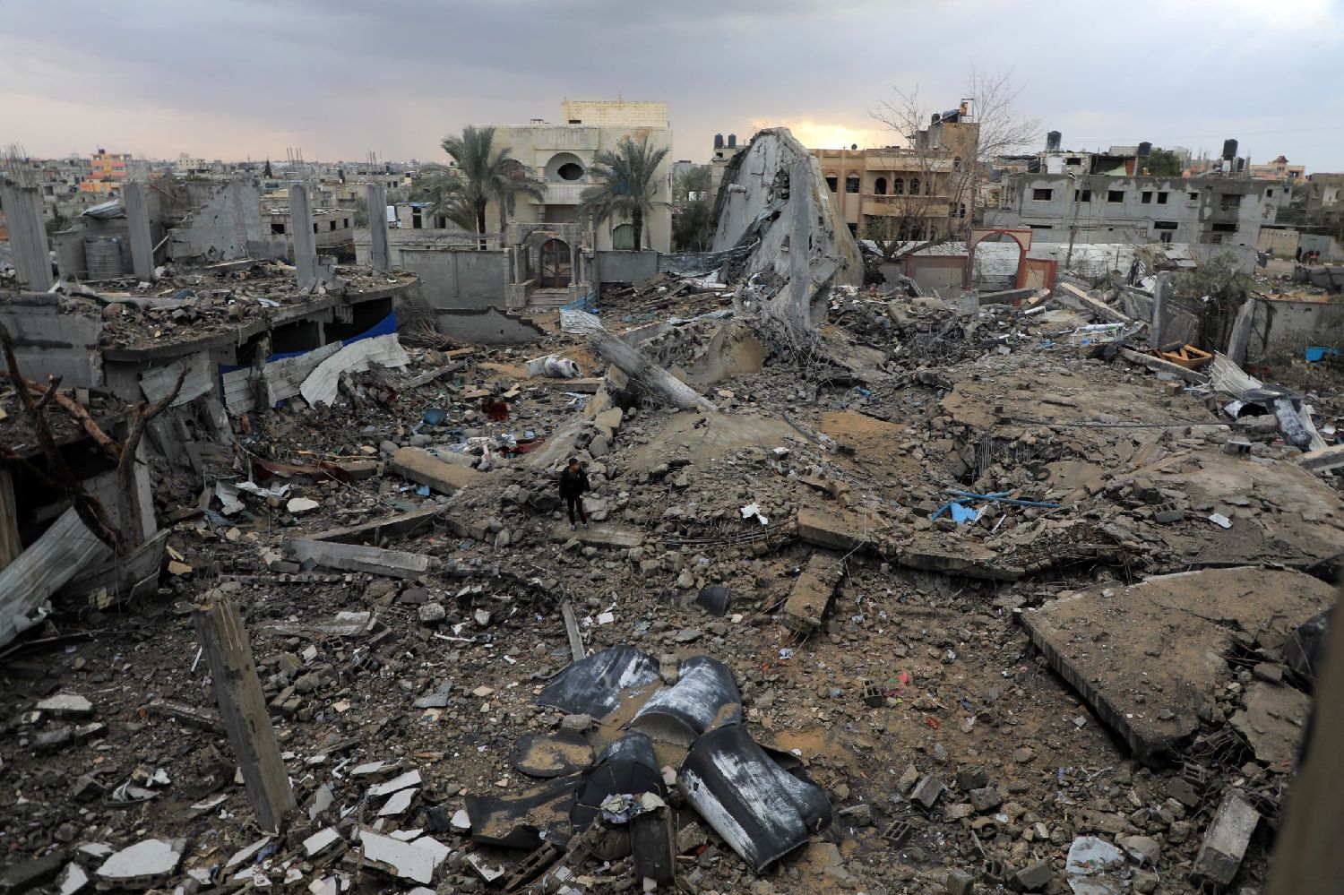 图为在加沙地带南部城市拉法拍摄的废墟。(图/新华社)