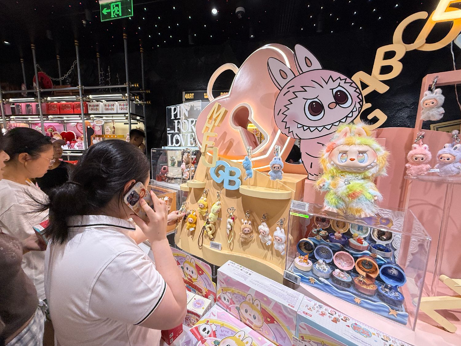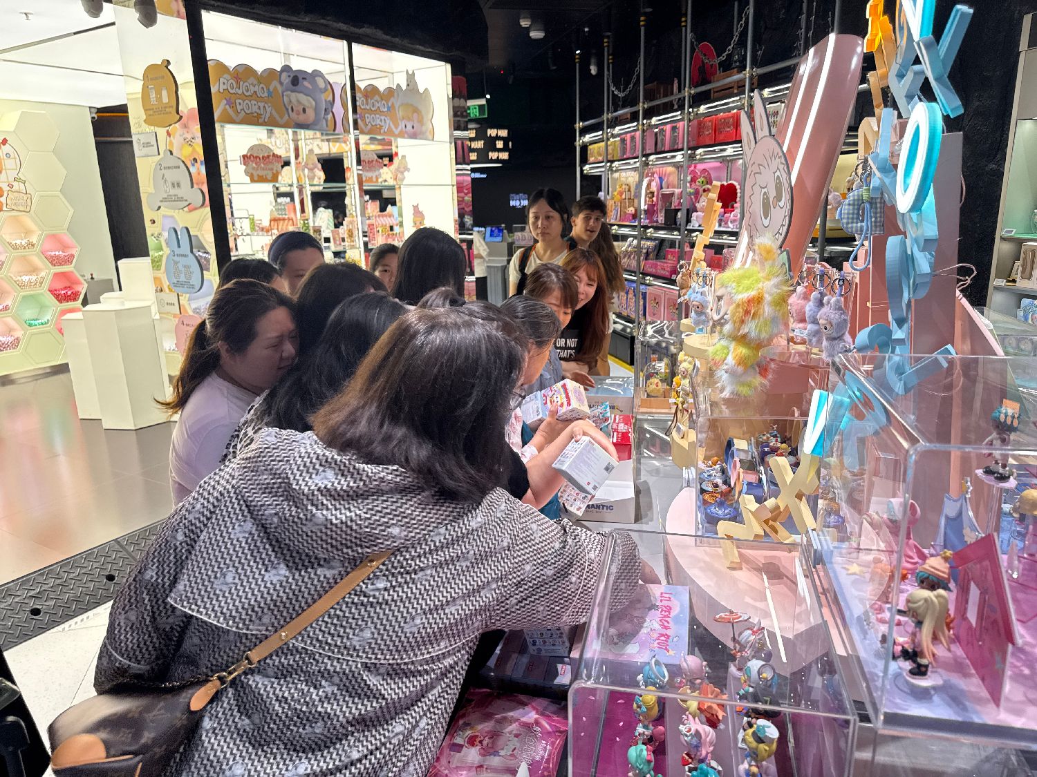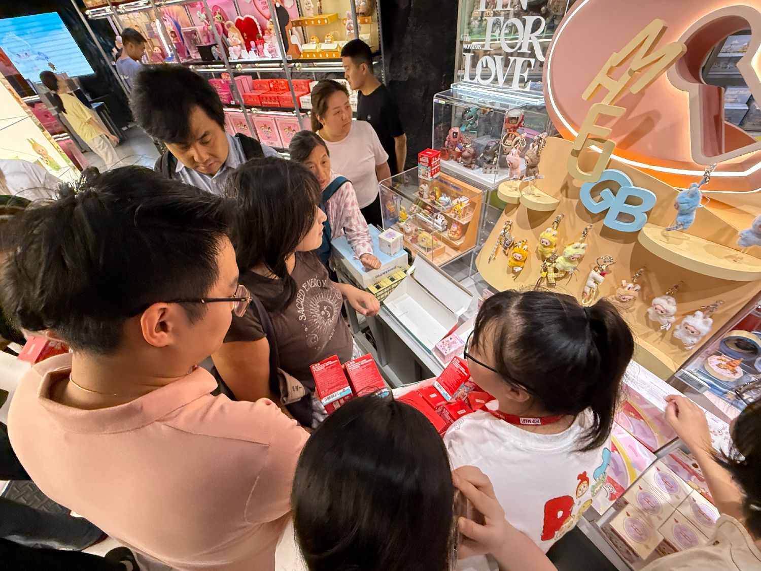 2025年8月29日,顾客抢购Labubu。(王亚 摄)