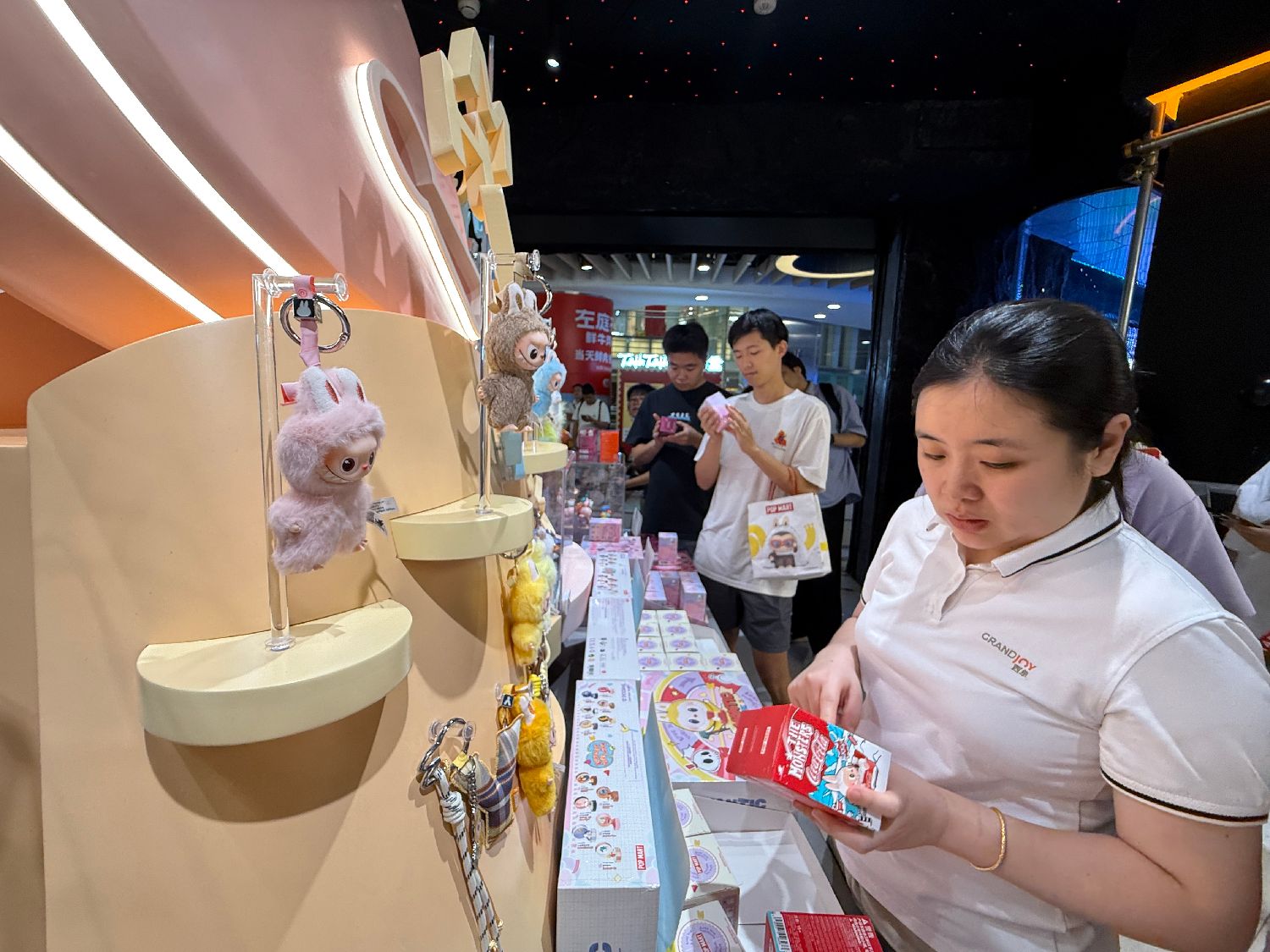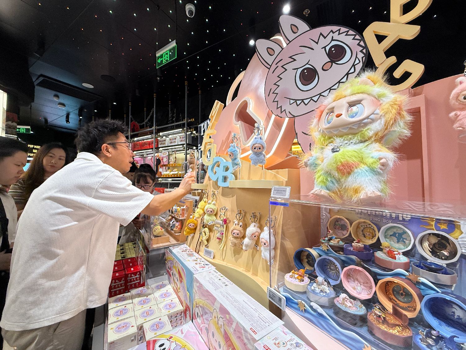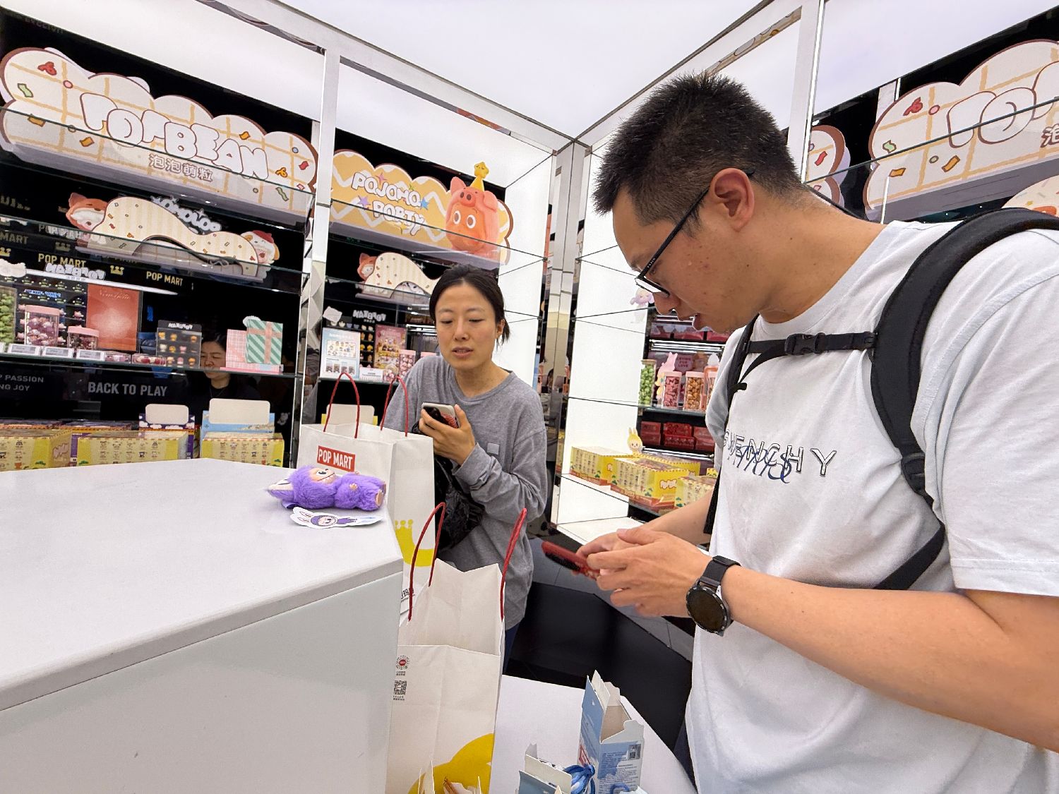 2025年8月29日,顾客抢购Labubu。(王亚 摄)