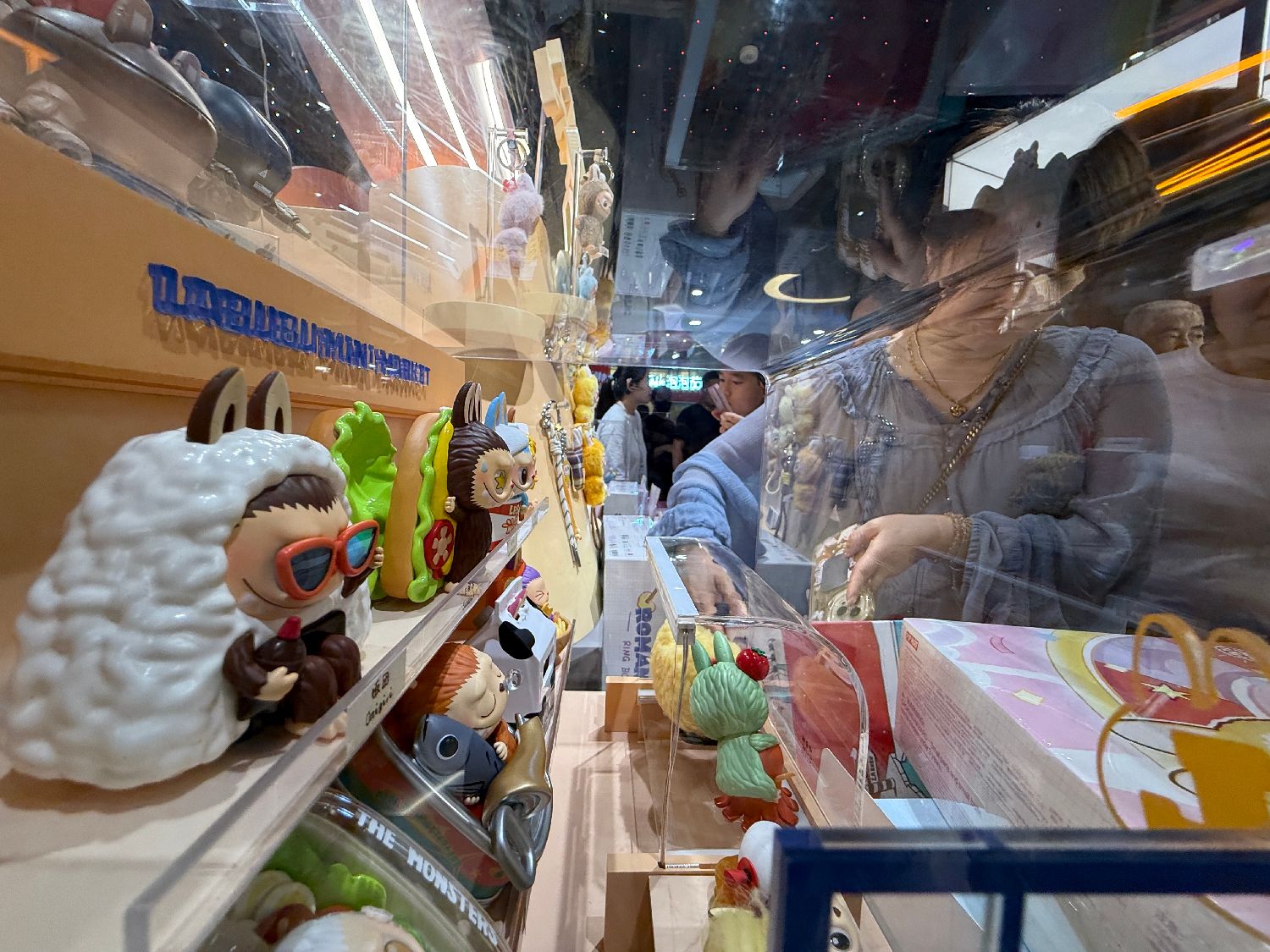 2025年8月29日,迷你Labubu被抢购一空,仅剩陈列展示品。(王亚 摄)