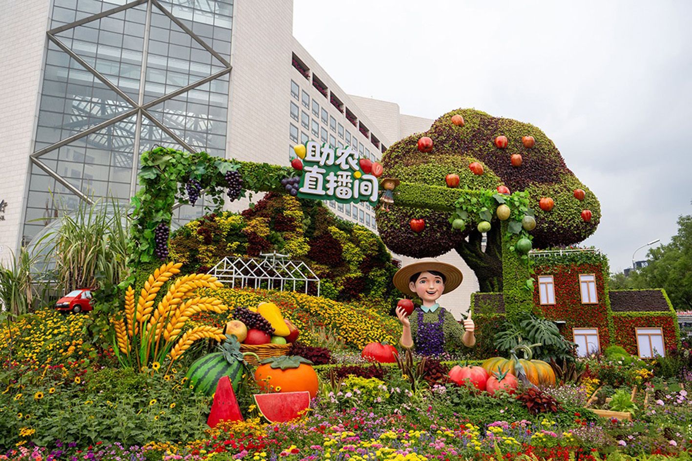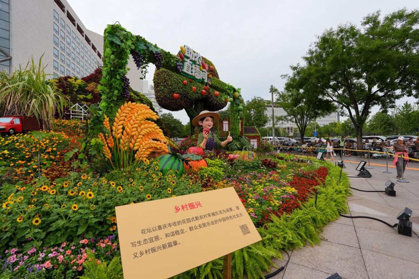 图为西单西北角的“乡村振兴”花坛。(人民网)
