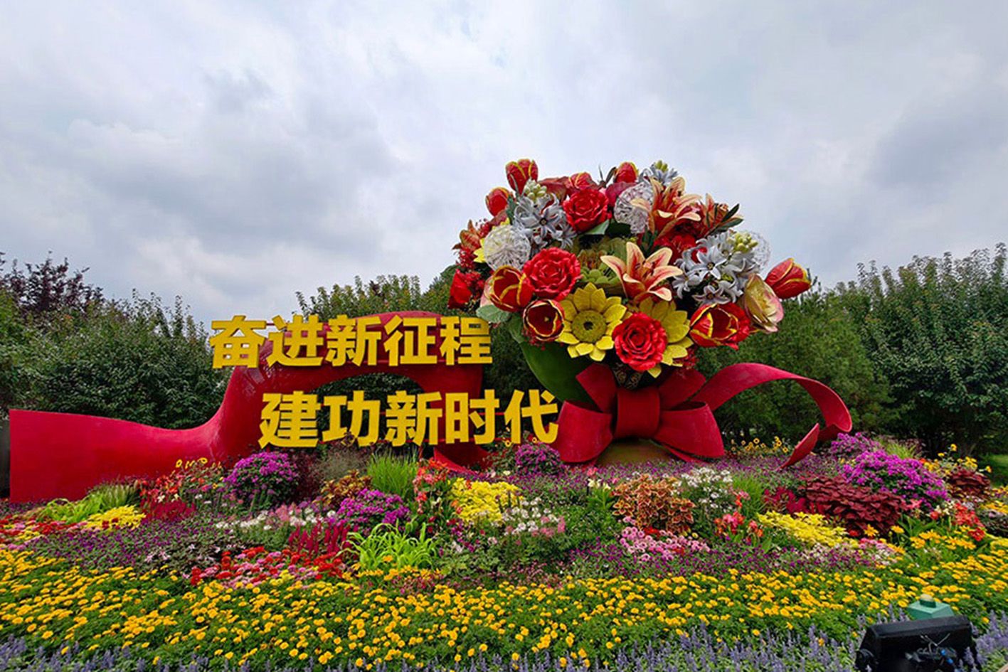 图为东单东南角的“黄河赞歌”花坛。(人民网)