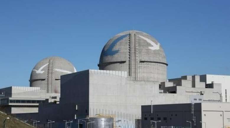 新古里3、4号机组全景,采用了韩国型反应堆“APR1400”的设计。基于APR1400降低功率的“APR1000”型号反应堆计划在捷克杜科瓦尼地区建设。 图源:HANKYOREH