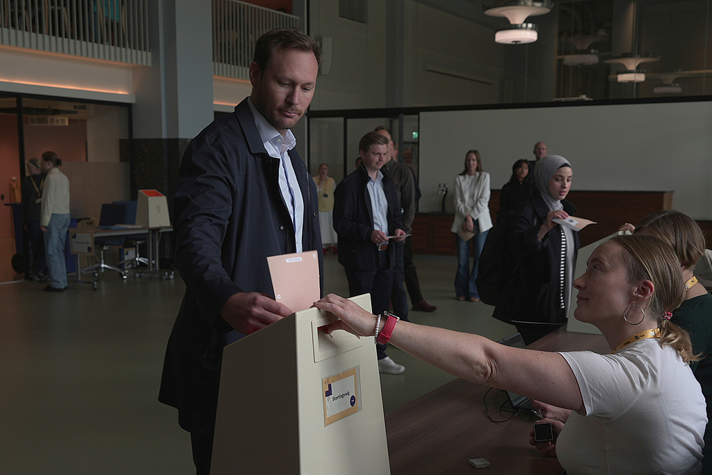 9月8日,挪威奥斯陆,人们在挪威议会选举中投票。(视觉中国)