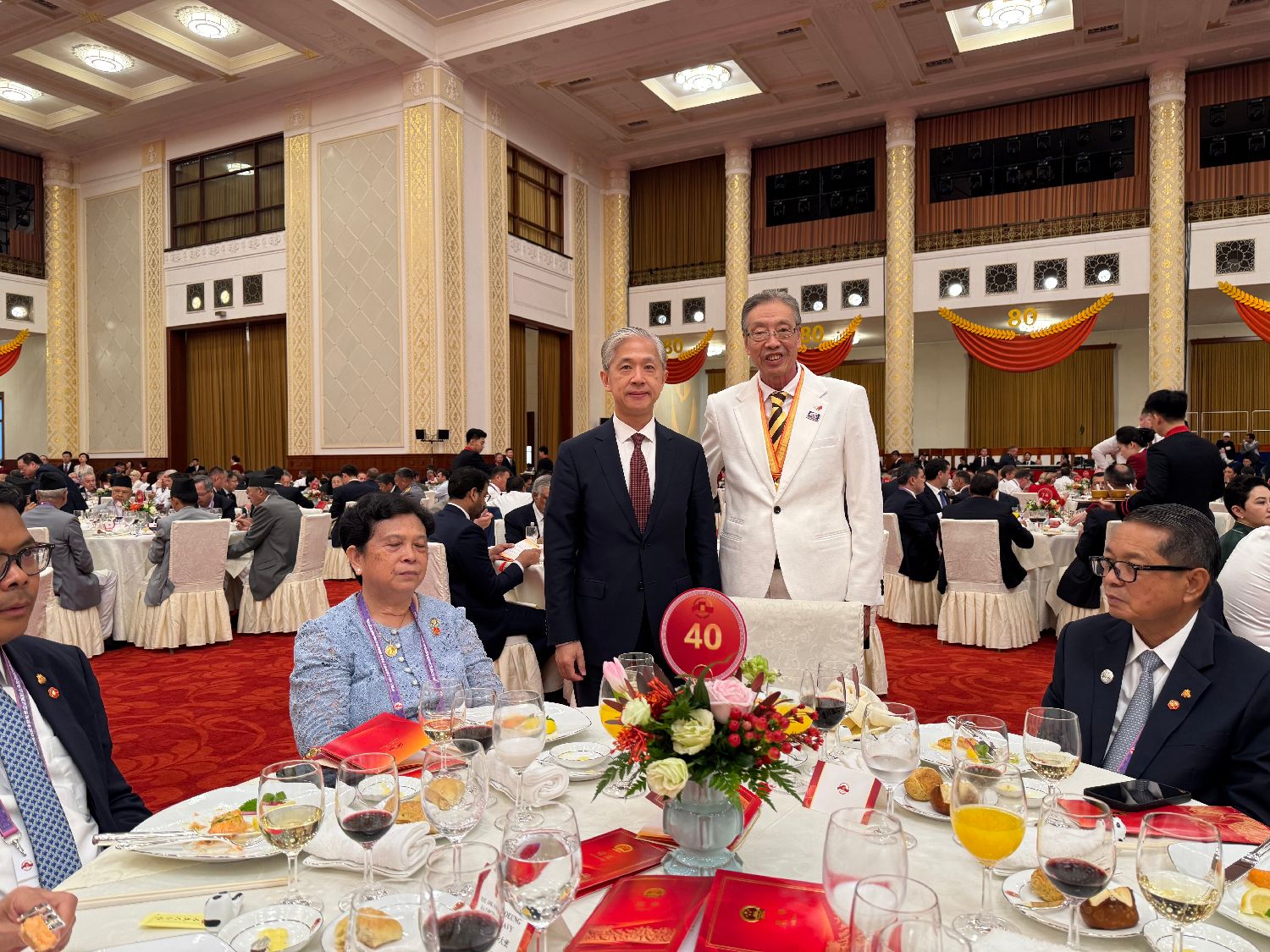 在第40席的桌子上看到一位熟悉的面孔,这不是外交部原发言人汪文斌吗?过去和他寒暄,才知道他陪的那一桌是柬埔寨的贵宾,他现在是中国驻柬埔寨全权大使。