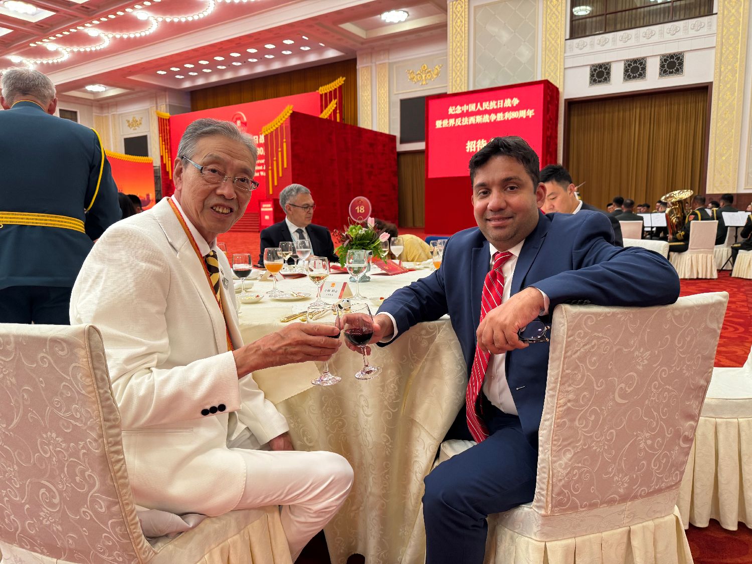 我和各国代表团以及健在的抗战老战士代表怀着胜利的喜悦,陆续步入人民大会堂宴会厅,出席纪念中国人民抗日战争胜利80周年招待会,共同祝贺这个胜利日阅兵。