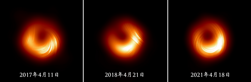 EHT合作组2019年发布的首张黑洞照片拍摄于2017年,其偏振结果于2021年公布。如今,通过对比分别拍摄于2017年、2018年和2021年的观测数据,天文学家在揭示黑洞磁场时变方面取得新的重要进展,为理解黑洞周围极端环境下的物理过程提供了新视角。