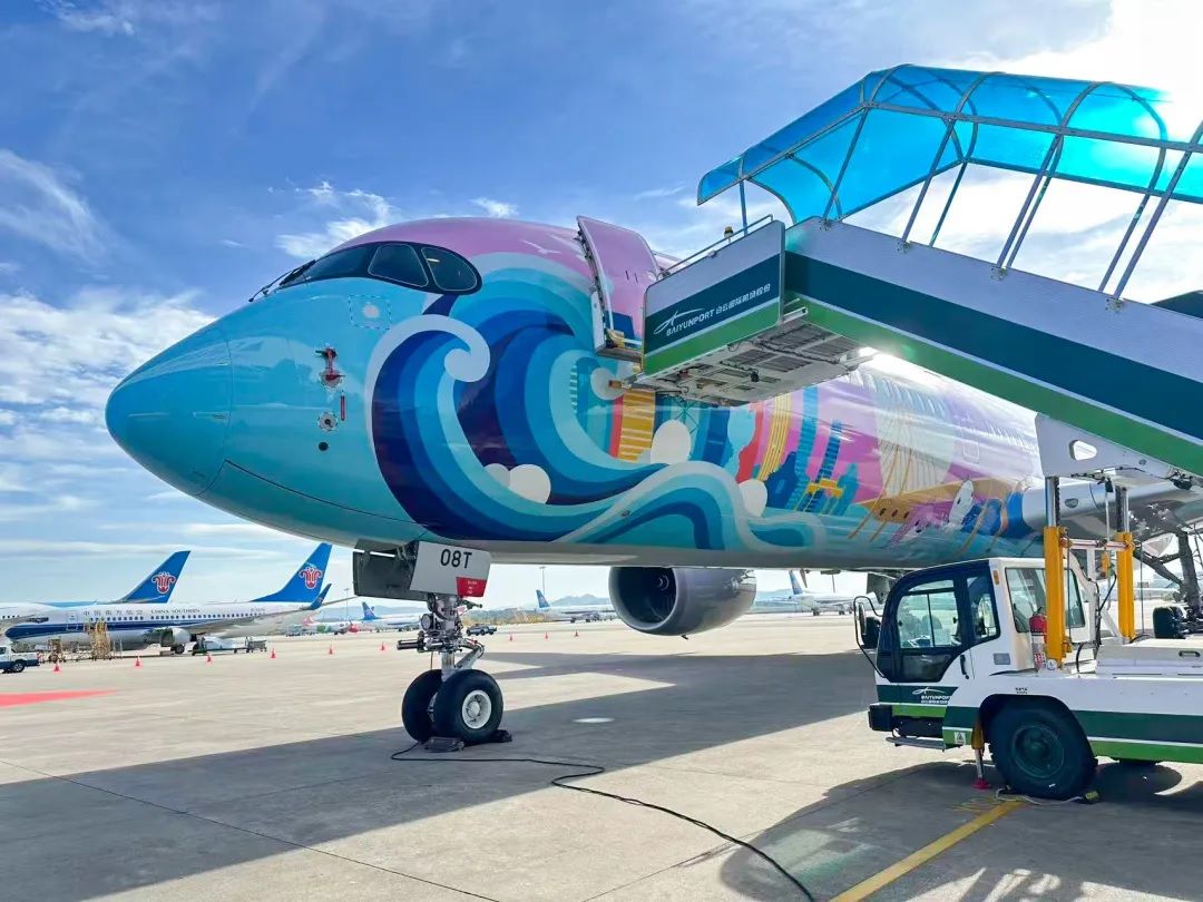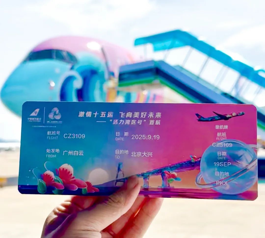 9月19日,中国南方航空首架十五运会主题彩绘飞机“活力湾区号”在广州白云国际机场正式亮相并投入运营。