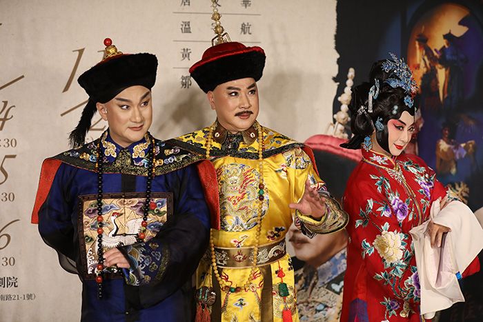 记者会上,“乾隆”扮演者唐文华、“和珅”扮演者温宇航、“王熙凤”扮演者黄宇琳等台湾京剧演员纷纷开嗓,演绎经典片段。