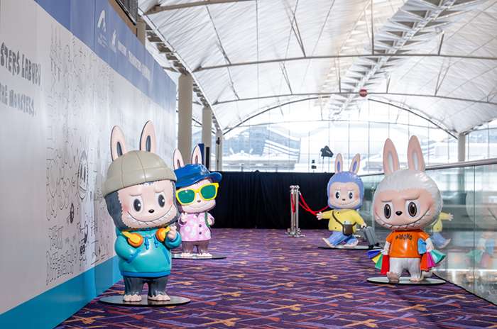 香港国际机场同时会于9月25至10月15日期间举行活动,送出机场限量版18厘米LABUBU手办,手办以香港国际机场标志性色彩设计,手持印有“HKG to Monster Land”的登机证,具有收藏与纪念价值。其中活动更包括THE MONSTERS贴纸及其他丰富奖赏,让旅客在欣赏艺术装置外,亦可带走专属收藏。