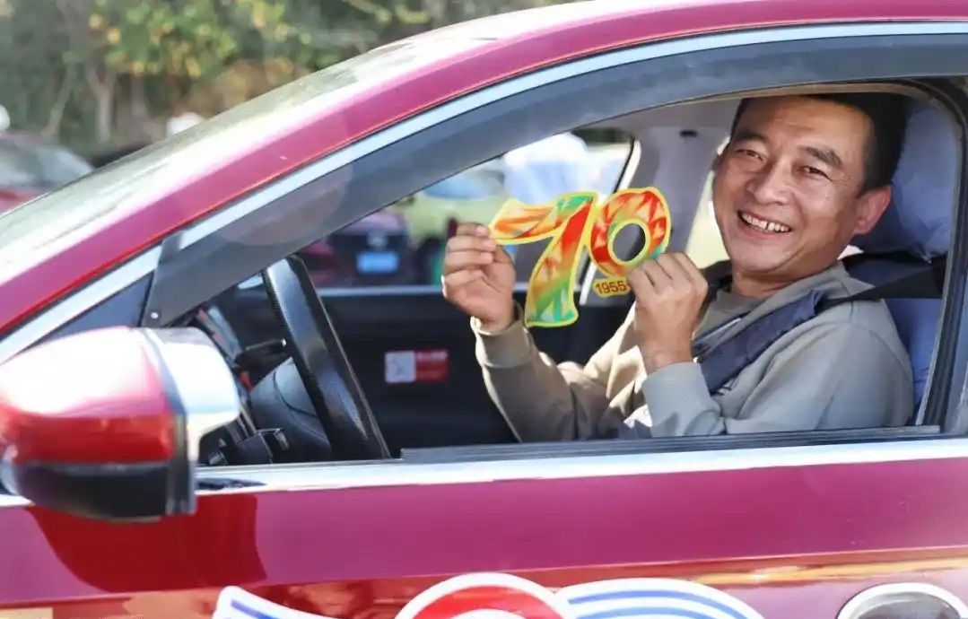 9月22日,在乌鲁木齐市公交出租汽车有限责任公司,出租车司机准备张贴印有新疆维吾尔自治区成立70周年庆祝活动的标识。(《乌鲁木齐晚报》)