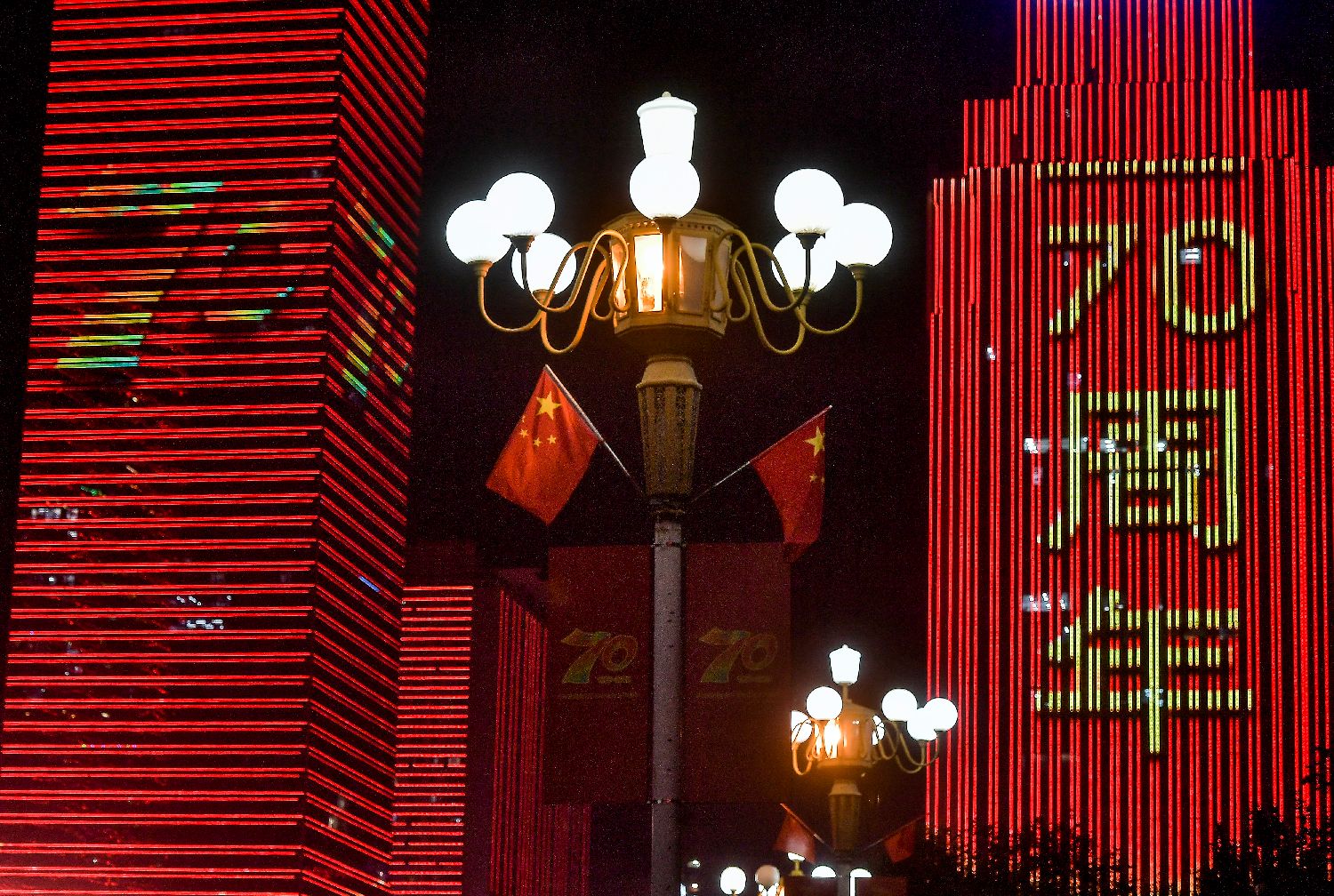 9月22日晚,新疆乌鲁木齐市西大桥周边高层楼宇“点亮”灯光秀,吸引众多市民驻足观赏留影。为庆祝新疆维吾尔自治区成立70周年,乌鲁木齐市多个区域在夜间开启灯光秀,展示70年来的各类成就。(中新社)