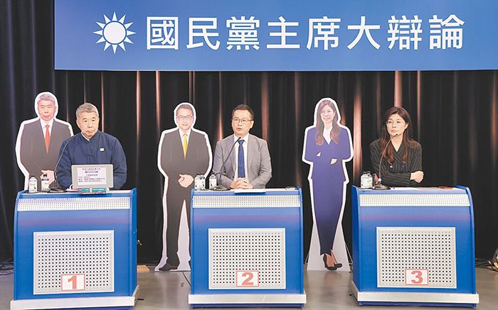 国民党24日召开党主席选举首次候选人协调会,并宣布将在全台各地举办6场以上分区说明会。图为台北“中天新闻”20日举办了首场国民党主席选举辩论会,3位候选人(左起)张亚中、罗智强、郑丽文出席。(图/台北中时新闻网)