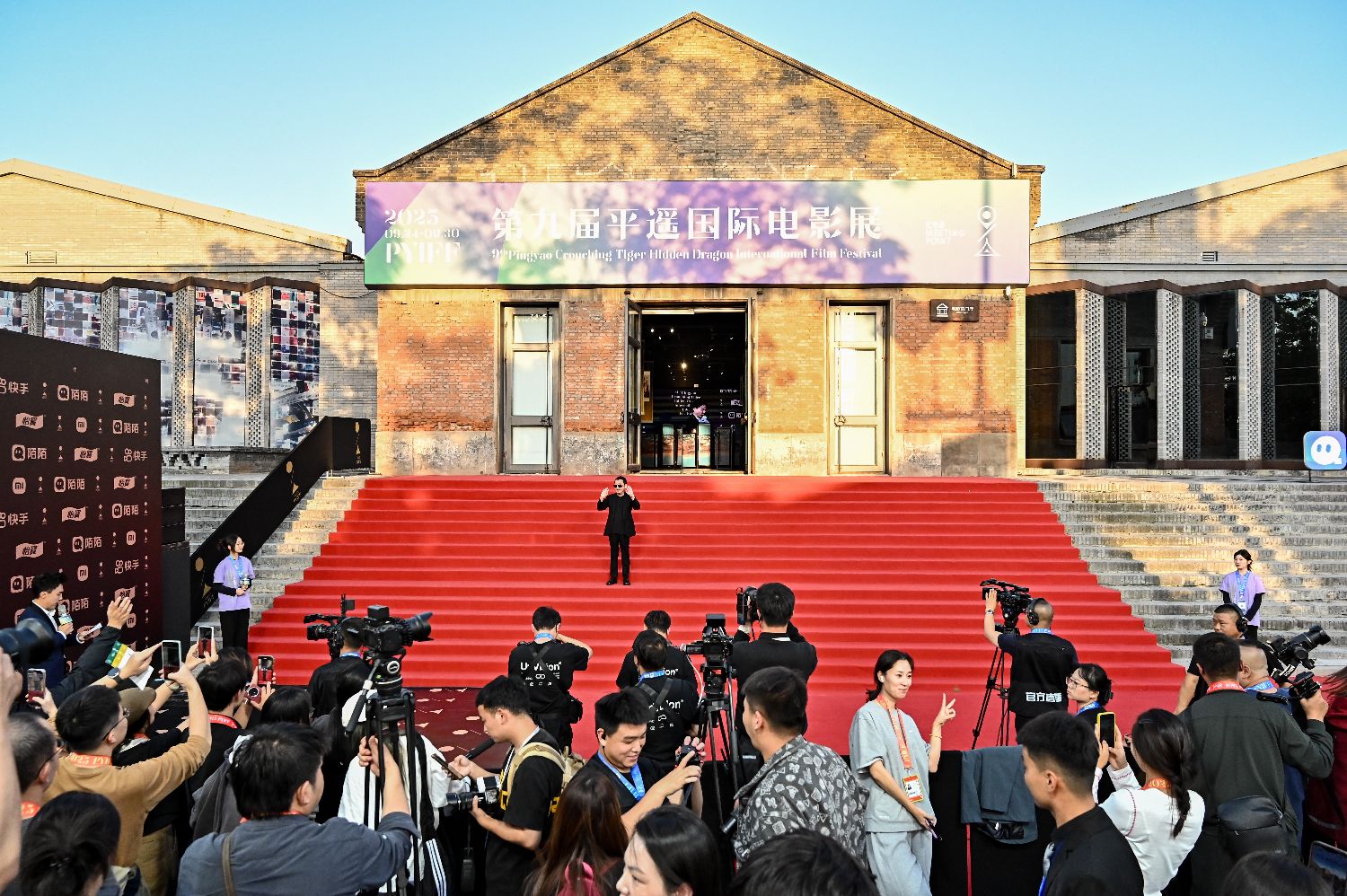 秋色染古城,光影聚福地。9月24日,第九届平遥国际电影展在中国山西平遥古城开幕。本届电影展将持续至9月30日,以“汇合点”为主题,电影展期间包括电影展映、产业创投、学术对话等活动。据悉,来自25个国家和地区的53部影片将陆续展映,其中,30%为国际首映,62.5%为亚洲首映,100%为中国首映,18部影片是新锐导演的首部作品。据悉,9年来,平遥国际电影展共有来自50多个国家和地区、5000多名电影人、450余部作品参展,吸引海内外200余万游客观展,以独特的文化魅力,让千年古城焕发新的光彩。图为导演贾樟柯亮相平遥电影宫。(中新网)