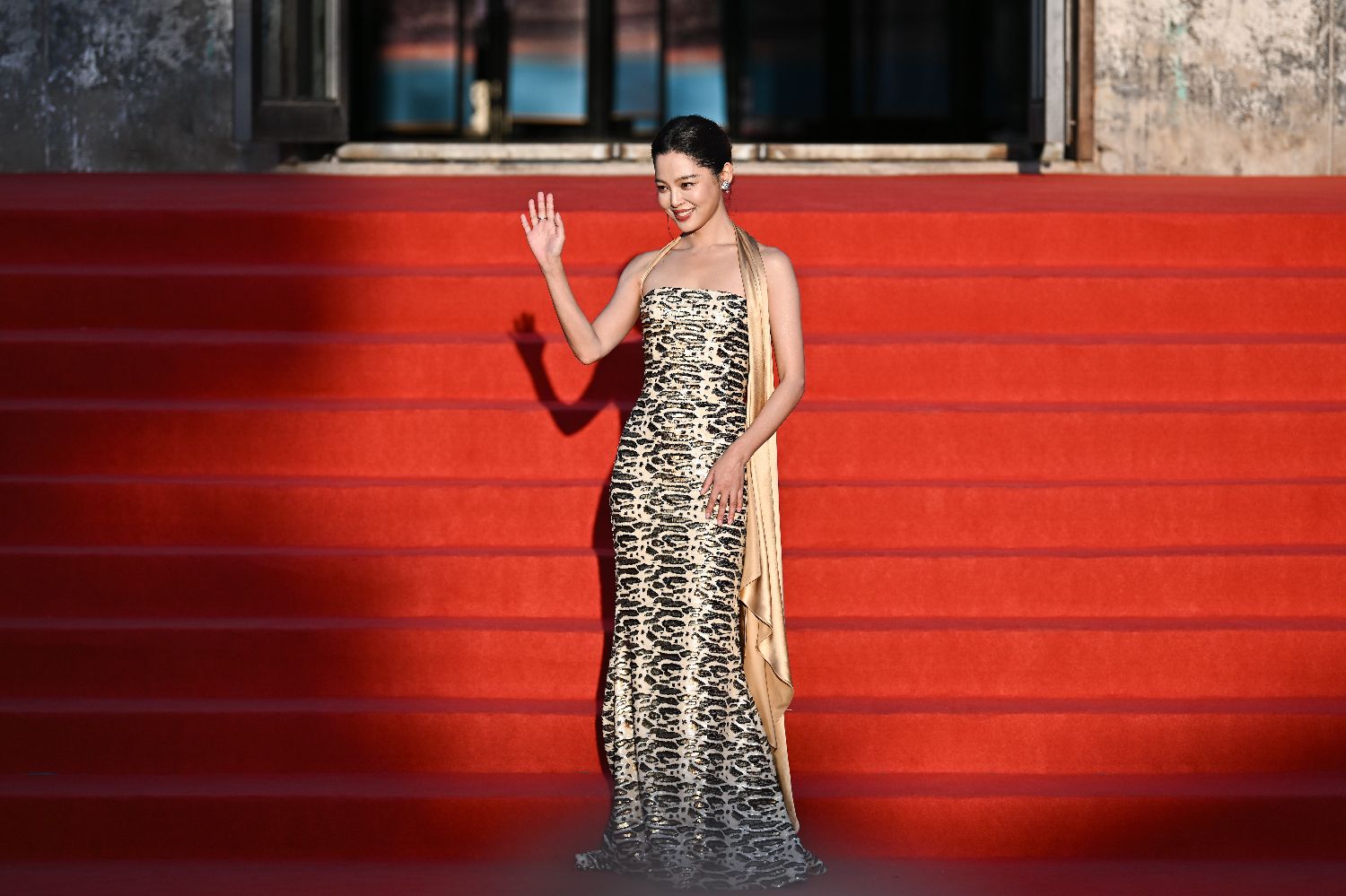 值得一提的是,第82届威尼斯国际电影节最佳女演员奖的中国影片《日掛中天》,将作为本届电影展的“平遥惊喜”进行中国首映。图为演员辛芷蕾亮相红毯。(中新社)