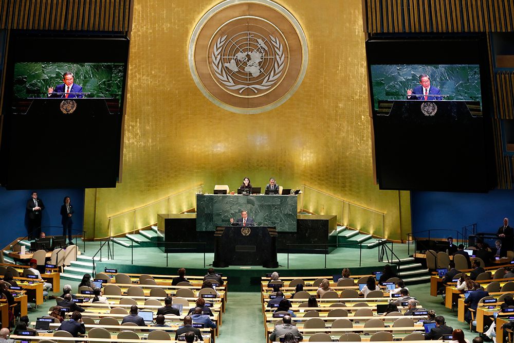 当地时间9月26日,中国总理李强在纽约联合国总部出席第80届联合国大会一般性辩论并发表讲话。(图/中新社)