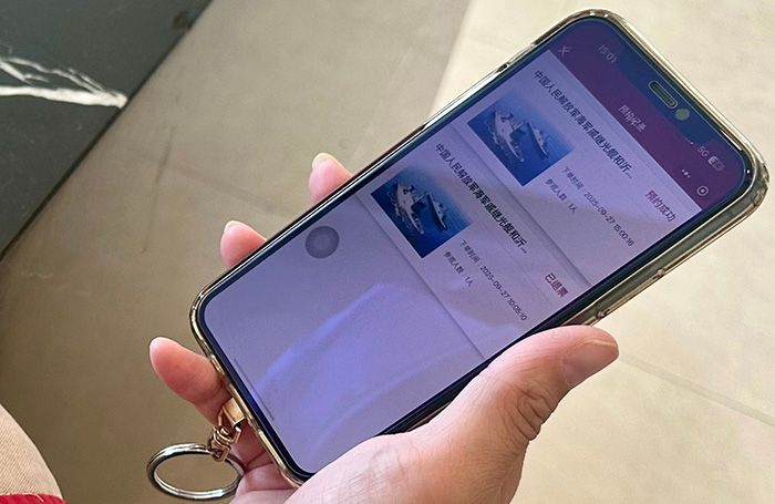 9月27日,一位香港市民展示成功预约参观解放军海军戚继光舰、沂蒙山舰的手机界面。(图/ 中新社)