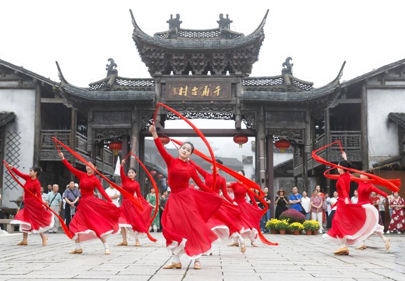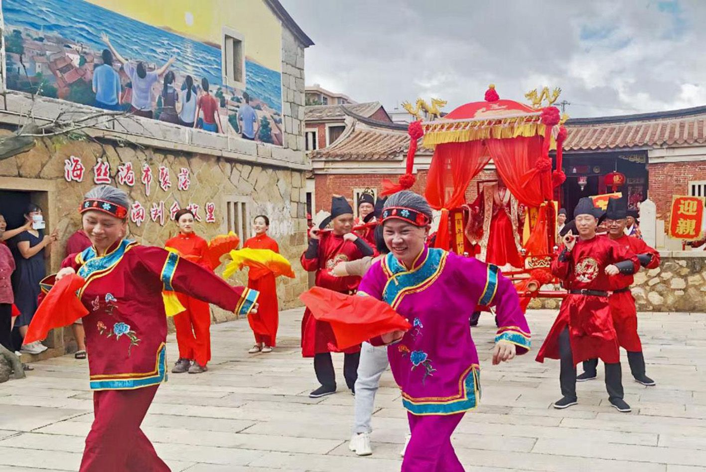 国庆、中秋“双节”将至,为营造欢乐祥和的双节氛围,福建泉港区启动“红砖古厝 海丝囍市”暨涂坑村古民居非遗市集文化节预热活动,以泉港婚俗情景沉浸式演绎、武术大家练、拳王争霸赛等特色活动,吸引大批游客和民众驻足观赏、拍照打卡,提前点燃双节游玩热潮。(中国日报网)