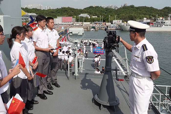 9月30日是两艘军舰访港首个开放日,主要面向香港青少年开放。前去参观的学生和带队教师们手持国旗、秩序井然地登上军舰,其中不少人都表示,这是他们首次登上中国海军军舰,激动之情溢于言表。