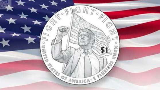 财政部官员比奇在社交媒体上公开了该纪念币的设计方案。设计显示,硬币一面为特朗普的侧面肖像,另一面则描绘了类似其在去年遇袭事件中场景的画面:他站在美国国旗前,高举拳头,并配有三次重复的“Fight(战斗)”字样。