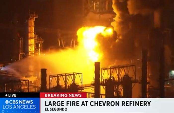 突发!美国加州一炼油厂爆炸起火 火光冲天