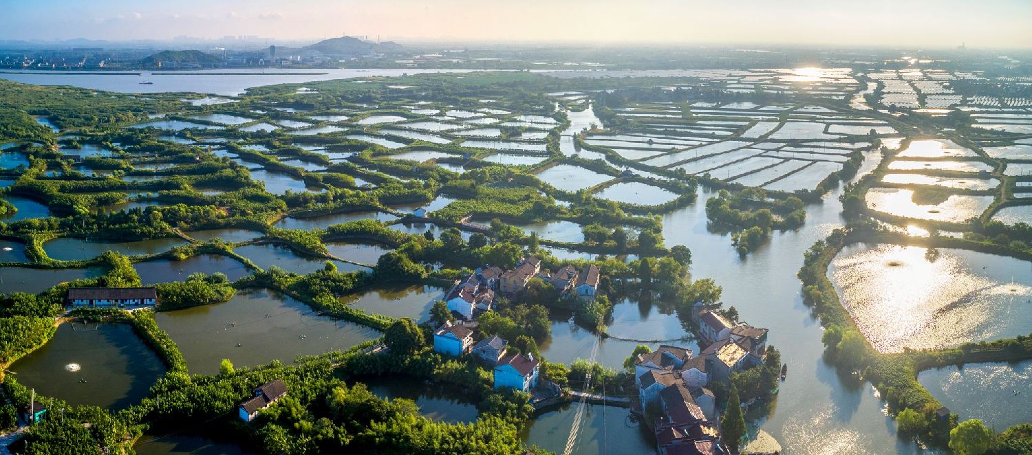 从高空俯瞰浙江湖州荻港村的万亩桑基鱼塘,犹如散落在人间的一面面镜子,吸引八方游客前来“打卡”。