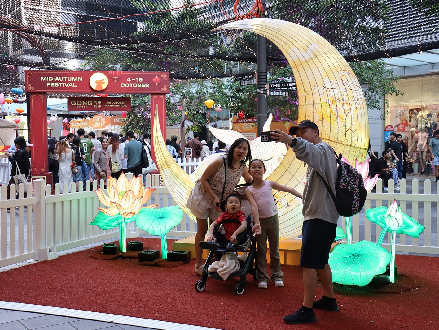 当地时间10月5日,澳大利亚悉尼市中心一商圈举办中秋庆祝活动,吸引当地市民参与。(中新社)