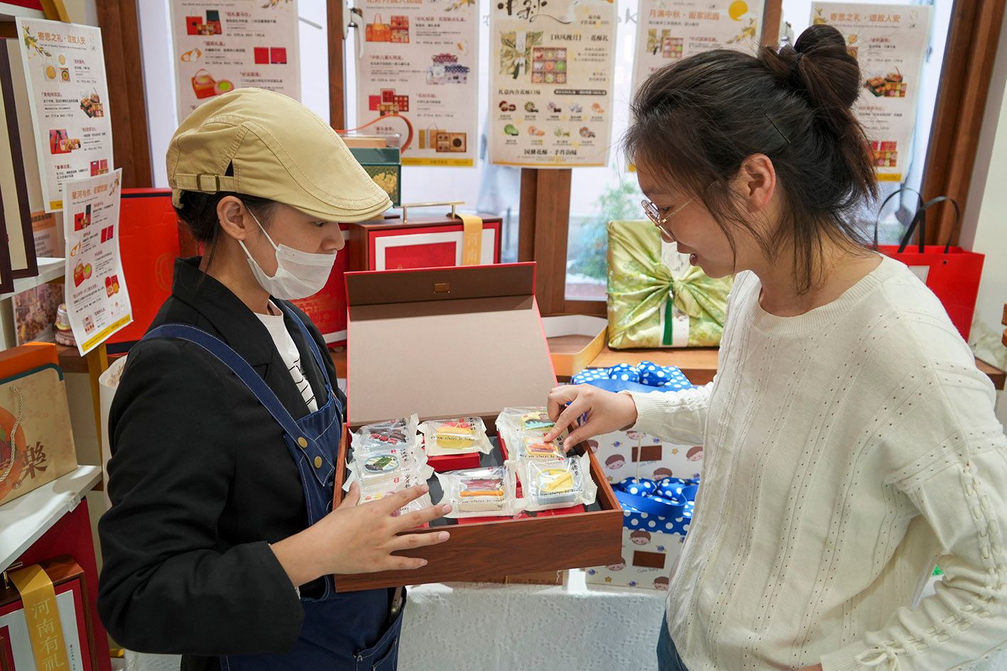 10月5日,河南郑州市文创月饼市场“新意”十足,融入少林寺、二七纪念塔、炎黄二帝等河南文化元素的文创月饼吸引众多市民前来选购。(中新社)