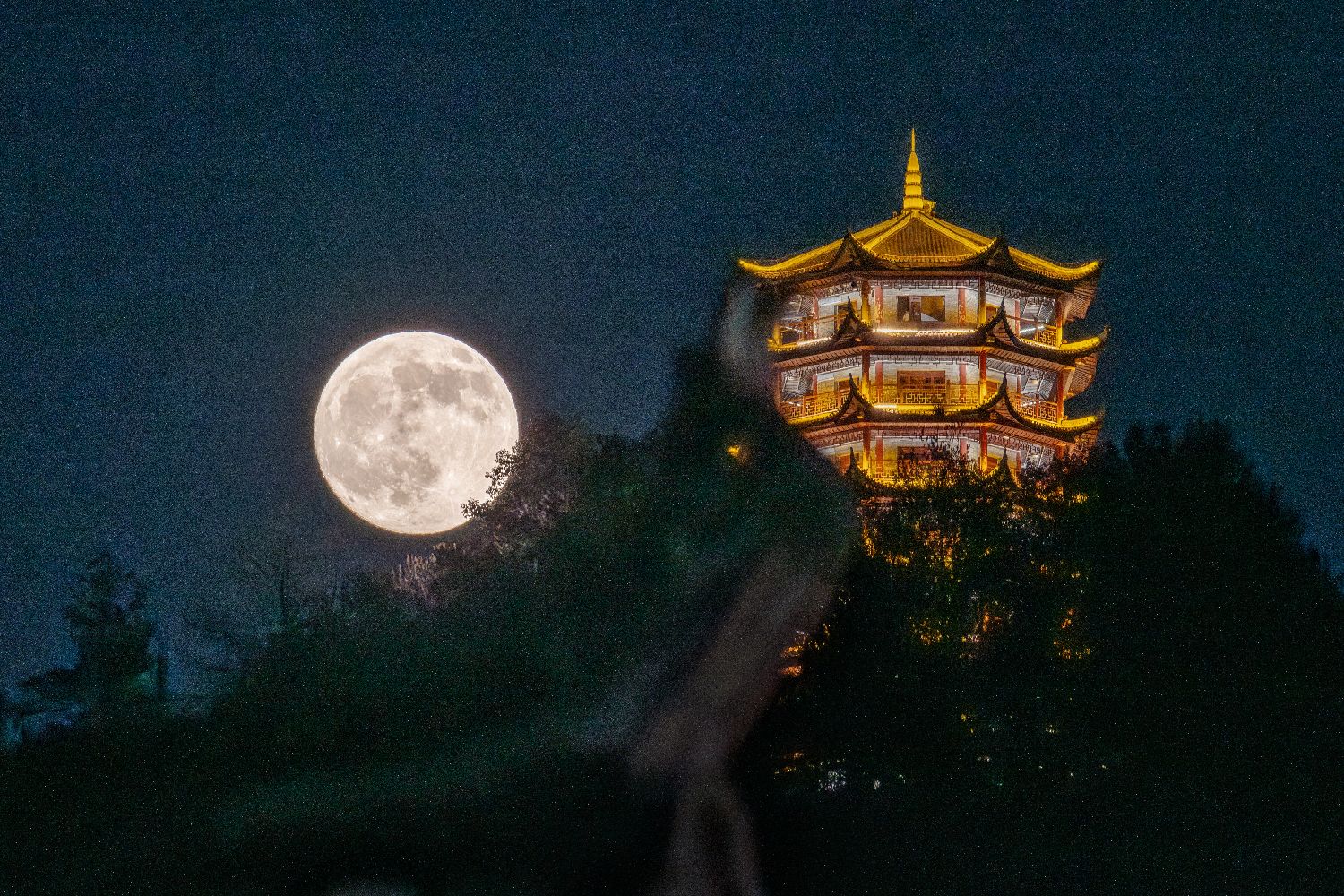 10月6日,一轮圆月“挂上”江西景德镇夜空。(中新社)