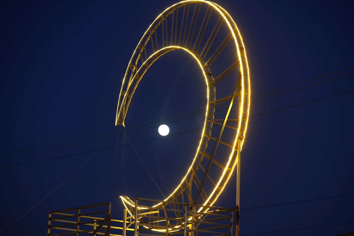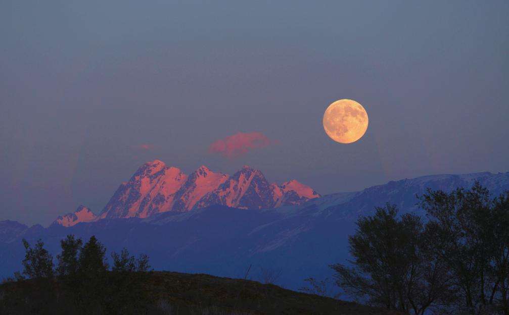 10月6日,新疆乌鲁木齐天山山脉上空的中秋圆月。(人民网)