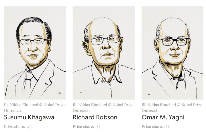 今年的诺贝尔化学奖授予日本科学家北川进(Susumu Kitagawa)、澳大利亚科学家理查德·罗布森(Richard Robson)以及美国加州大学伯克利分校的奥马尔·亚吉(Omar Yaghi),他们因开创了金属有机骨架(MOF)的全新领域,共同摘得这一桂冠。
