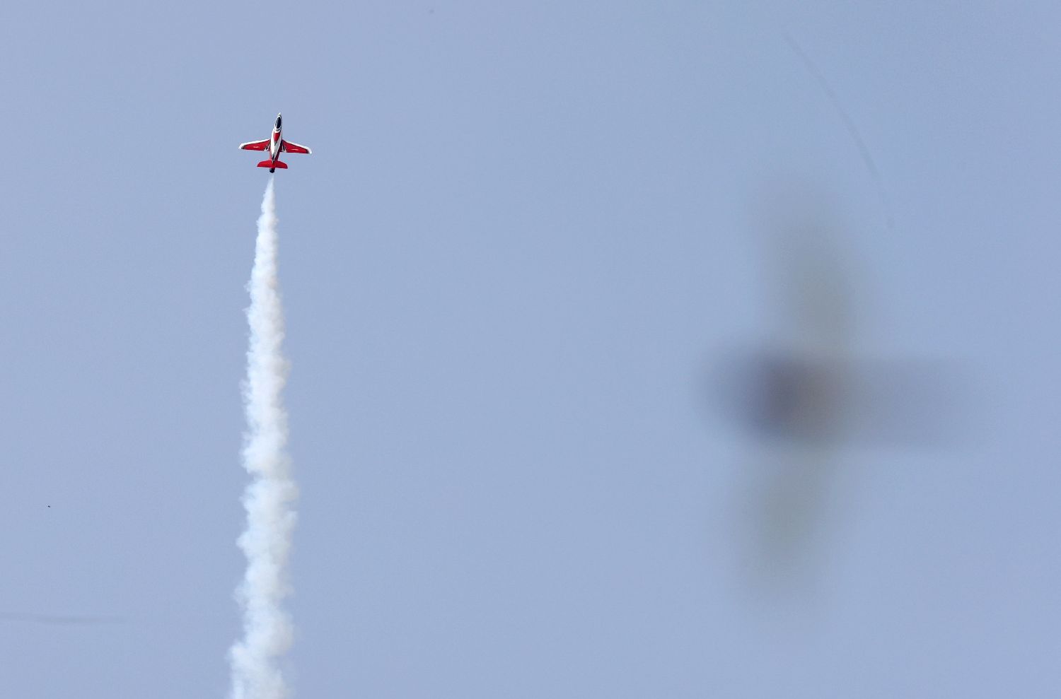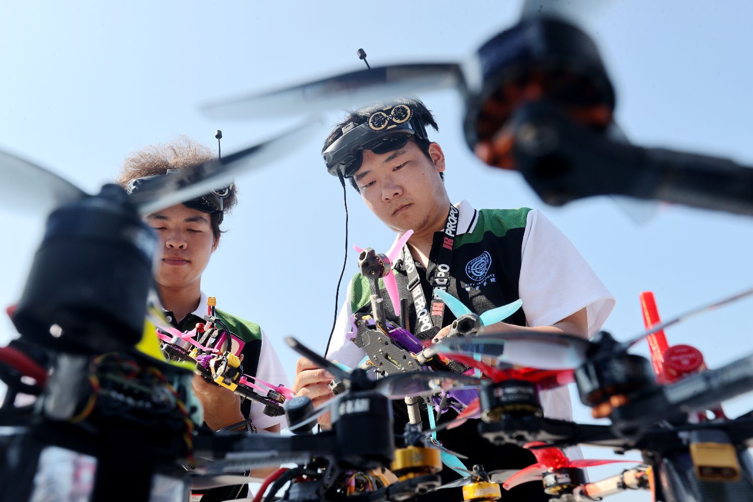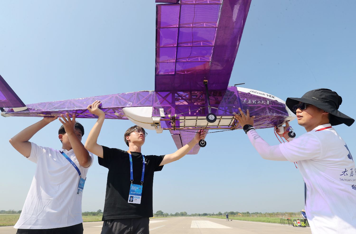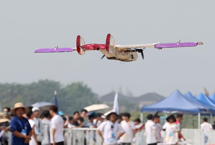 图为选手在进行飞行器飞行展示。(人民图片网)