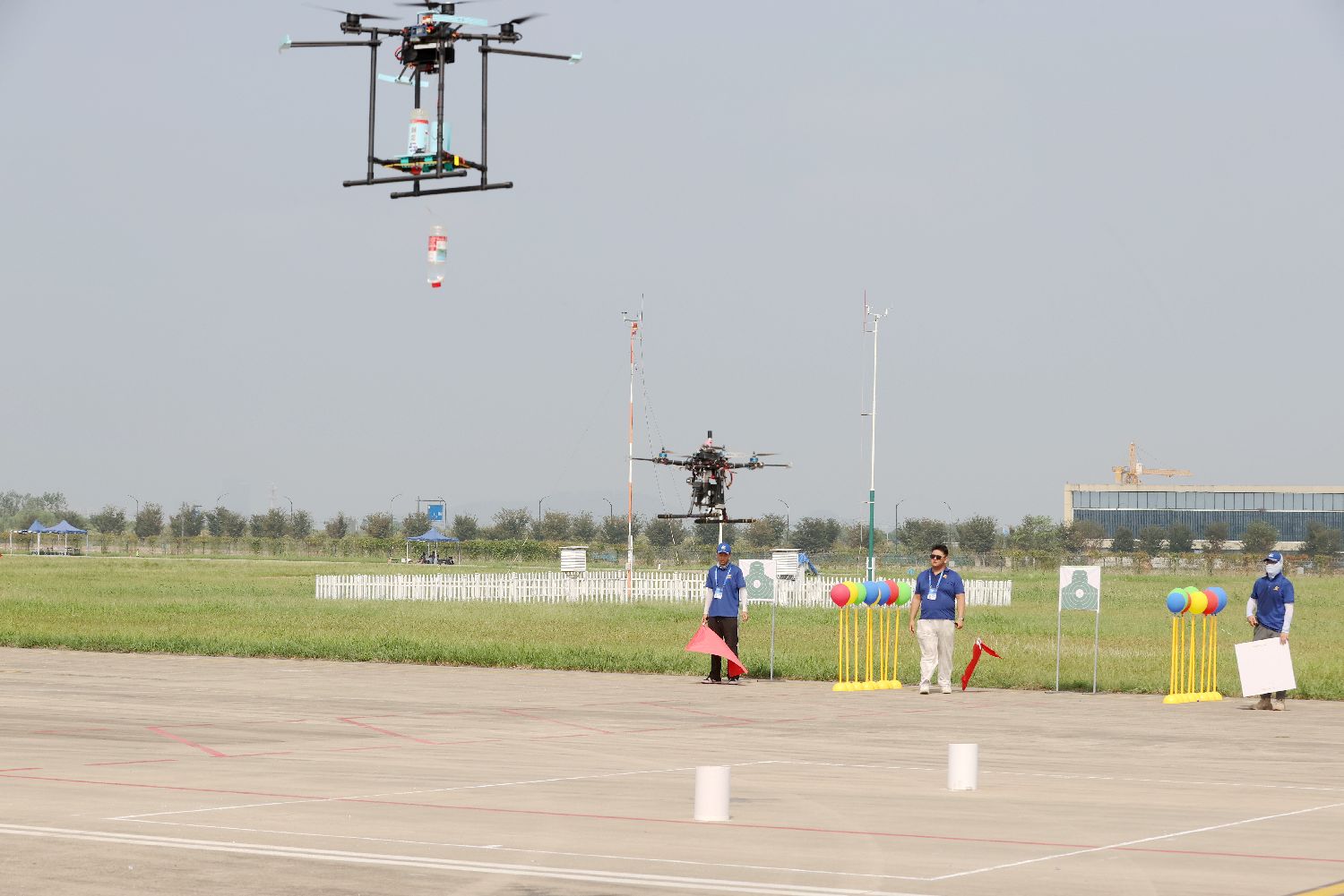 图为选手在进行多旋翼精准投放展示。(中新社)