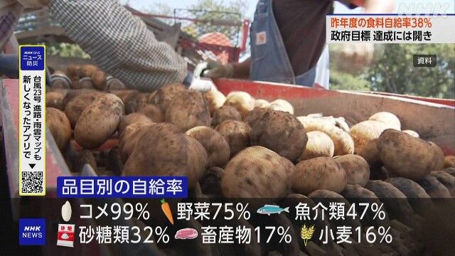 日本粮食自给率连续四年维持在38%,距离到2030年度提高至45%的目标仍有差距
