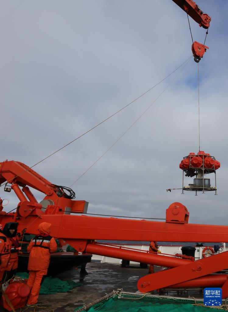 图为科考队员正在回收底拖网。新华社记者刘诗平摄