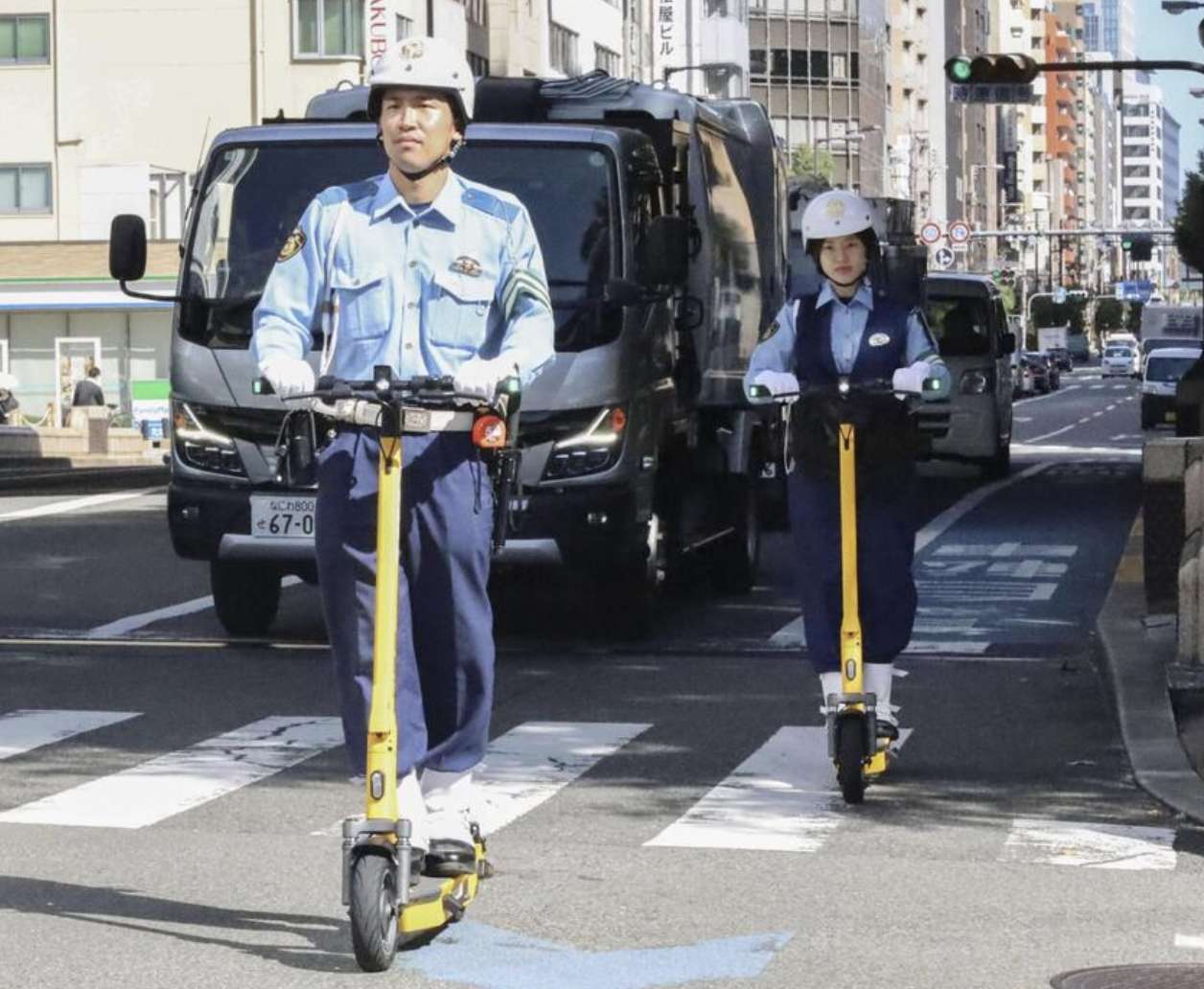 警察正在骑行电动滑板车执行公务 图源:日本共同通讯社